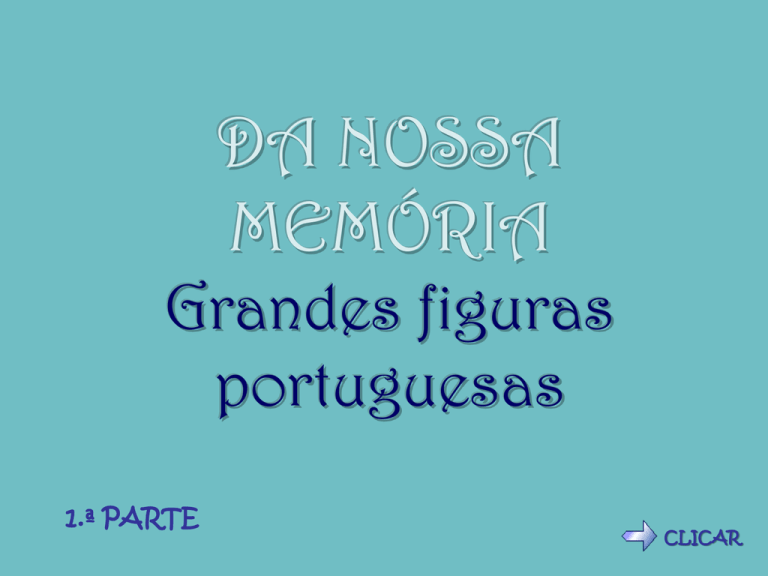 DA NOSSA MEMÓRIA Grandes figuras portuguesas 1.ª PARTE CLICAR D. Afonso Henriques A culpa foi dele. Não de falarmos português e sermos bisonhos, mas de termos um país pequeno e de fracos recursos. Como o país que fundou se manteve independente e perdurou muito para além do que se podia imaginar, viria a tornar-se, na memória de quem queria ver nele o segredo dos sucessos futuros… José Mattoso, historiador 1109 - 1185 De entre as primeiras batalhas que o primeiro rei de Portugal travou, aquelas que resultaram nas conquistas de Lisboa (1147) e Santarém (1147) são possivelmente as mais importantes da nossa História Papa João XXI 1205 - 1277 Médico, filósofo e matemático, Pedro Julião, conhecido como Pedro Hispano, viria a ser Papa, em 1276, com o nome de João XXI. Tornou-se famoso pelas suas obras de cariz filosófico, teológico e médico. O desabamento de um telhado do Palácio Viterbo causou-lhe a morte e determinou que o seu pontificado, escassos oito meses, seja um dos mais curtos da história. Sepultado na Igreja de San Lorenzo, em Viterbo, João XXI teve um dos pontificados mais curtos da História. Ainda assim teve intervenções importantes entre nações, e empenhou-se na união a Roma de cristãos do Oriente, e na defesa dos Lugares Santos. Pedro e Inês 1320 - 1357 D. Inês de Castro foi amaldiçoada mal pôs os pés no reino de Portugal. Chegou no séquito de D. Constança, a futura mulher de D. Pedro, e desde logo foi incapaz de resistir à paixão que nutria pelo ainda príncipe. Um sentimento recíproco que levou o rei D. Afonso IV a mandar executá-la… mas D. Pedro I mandou construir dois túmulos, para a ela se unir na morte. Não existe na lírica portuguesa, amor tão celebrado como aquele que uniu Pedro e Inês. Mais do que a paixão entre ambos e a tragédia que a finalizou, contribuiu para a construção do mito a perenidade da pedra. Os mausoléus de D. Pedro e D. Inês, no Mosteiro de Alcobaça, são um testemunho material visível, em beleza, disposição e encenação representando a paixão na sua maior dimensão. A vida de Pedro e Inês, a morte desta, tornaram-se símbolos universais do amor esplêndido. A sepultura de ambos, frente a frente, reforça a ideia de que jamais os Homens poderão separar aquilo que Deus uniu. D. Nuno Álvares Pereira 1360 - 1431 D. Nuno Álvares Pereira é recordado como o herói que conseguiu manter Portugal fora do jugo castelhano. Foi um militar exemplar que, tendo um exército muito mais pequeno, conseguiu, com a táctica do quadrado, vencer a Batalha de Aljubarrota. Figura mítica do imaginário português, foi condestável do Reino e, desde 1918, por decisão de Bento XIV, o seu culto é reconhecido pela igreja católica. Comandando as forças do Mestre de Avis, venceu os castelhanos nas batalhas de Atoleiros (1384), Aljubarrota e Valverde (ambas em 1385). Herói, patriota e santo, D. Nuno Álvares Pereira guiou os destinos de Portugal. Infante D. Henrique 1394 - 1460 Devotado apaixonadamente às ciências cosmográficas, o infante D. Henrique foi o maior matemático do seu tempo, aplicou o astrolábio à navegação e inventou as cartas planas. A dinâmica dos Descobrimentos valeulhe o cognome de ‘o Navegador’. Aquele que foi o vulto mais empreendedor da nossa Idade Média e o mais ilustre da Ínclita Geração, aos 63 anos ainda embarcou na armada que, em 1457, conquistou Alcácer Ceguer. É a D. Henrique que se deve a dinâmica e a organização dos primeiros tempos dos Descobrimentos portugueses. No promontório de Sagres fundou uma verdadeira ‘academia marítima’ onde organizou e desenvolveu as viagens. D. João II 1455 - 1495 “Morreu o Homem”. Assim terá reagido a rainha Isabel, ‘a Católica’, quando tomou conhecimento da morte de D. João II. Ficou para a História como o ‘Príncipe Perfeito’, destacando-se o seu papel pela progressiva centralização do poder régio e pela política diplomática, que culminou na assinatura do Tratado de Tordesilhas. A partilha das esferas de interesses com Castela com o beneplácito do Papa é a maior vitória de D. João II. A assinatura do tratado de Tordesilhas, em 1494, segundo o qual o continente africano e parte do Brasil ficavam na zona de influência portuguesa. Vasco da Gama 1468 - 1524 Vasco da Gama comandou a armada que realizou o maior feito da História dos Descobrimentos Portugueses: a Descoberta do Caminho Marítimo para a Índia, viagem que abriu as portas das riquezas do Oriente e ligou por mar a Europa à Ásia. Vasco da Gama zarpou de Lisboa em 1492 com a missão de encontrar o melhor caminho entre a velha Europa e a promissora Índia, conseguindo cumprir o seu objectivo. Vasco da Gama não desiludiu o seu monarca. Enquanto Cristóvão Colombo, um então obscuro marinheiro procurava chegar à Índia pelo Ocidente, o pequeno nobre nascido no Alentejo, almejava o mesmo objectivo, mas navegando para Oriente. Foi ele que saiu vitorioso. Afonso de Albuquerque 1462 - 1515 Afonso de Albuquerque foi nomeado governador da Índia pelo rei D. Manuel I e é considerado um dos heróis ligados aos descobrimentos. Colocou as chaves do Índico nas mãos do rei, vedando a navegação aos muçulmanos. Lançou as bases do Império Português do Oriente através do domínio de pontos estratégicos e da construção de feitorias. Incapazes de dominar todo o Oriente, quer por razões logísticas quer por razões humanas, os portugueses depararam, no início do século XVI, com o problema da forte oposição dos locais e pelas diferenças religiosas entre muçulmanos e cristãos. Bartolomeu Dias 1450 - 1500 A viagem de Bartolomeu Dias que, em 1488, dobrou o cabo da Boa Esperança, foi um marco na história da navegação portuguesa. Pela primeira vez um europeu navegava no oceano Índico e passava a ser possível chegar à Índia. Bartolomeu Dias, considerado o maior navegador do século XV, não foi agraciado com qualquer título ou recompensa, m
