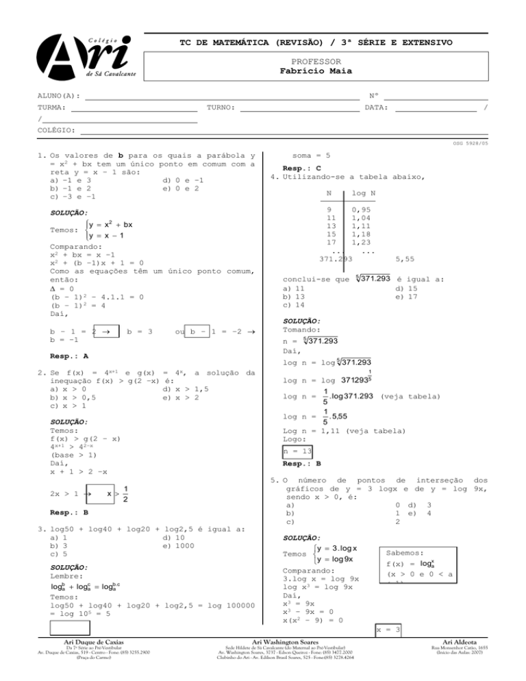TC DE MATEMÁTICA (REVISÃO) / 3ª SÉRIE E EXTENSIVO