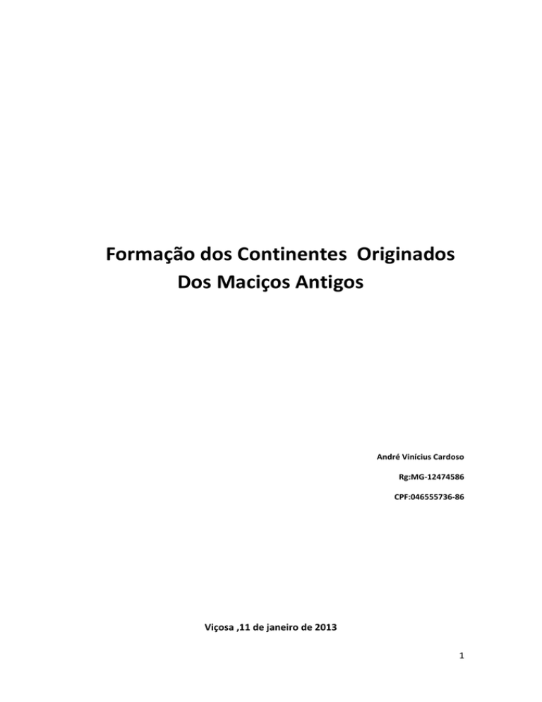 Formação dos Continentes Originados Dos Maciços Antigos André Vinícius Cardoso Rg:MG-12474586 CPF:046555736-86 Viçosa ,11 de janeiro de 2013 1 Objetivo O presente artigo objetiva demonstrar as formações continentais a partir dos maciços antigos(formações cristalinas) ,e perceber as consequências da deriva continental a partir da quebra da Pangea Maciça. Introdução Os maciços antigo são blocos imensos de rochas antigas. Estes escudos são constituídos por rochas cristalinas (magmático-plutônicas), formadas em eras précambrianas, ou por rochas metamórficas (material sedimentar) do Paleozoico, são resistentes, estáveis, porém bastante desgastadas ,formavam a pangea(continente único ,existente a milhões de anos) ,e com o rompimento da mesma deu inicio as formações continentais e as placas tectônicas que estão sob o manto ,formando os continentes como o conhecemos.A quebra do maciço fez com que se formasse as placas tectônicas logo na borda dos maciços e os mesmos foram aumentando a distancia entre os mesmos ,formando a crosta oceânica ao longo de sua ruptura os afastando mutuamente(Figura 9).A causa da quebra foi possivelmente um grande impacto gerado por um meteoro de forma estreita e pontiaguda ,com aprimadamente 3.000km de comprimento por 500km espessura , que veio causar a quebra do mesmo ,extinguindo os grandes repteis e a vida vegetal existente.Com a separação dos maciços grande quantidade de matéria orgânica caiu de sob os maciços ,que nos da indícios da vida pré-histórica através de fósseis e também a geração de grandes reservas de petróleo(figura 11). Formação da America do Sul: Maciço americano desgarrado da áfrica se choca com a placa tectônica de nazca formando as cordilheiras dos Andes e posteriormente devido ao acumulo de sedimentos forma-se então as bacias sedimentares.Como mostra figura 1.Sendo portanto o movimento de placa que formou 2 a America do Sul oceânica -oceânica e não oceânica continental , como se acredita 1:Maciço Americano 2:Maciço Africano 3:Placa Sul americana 4:Placa de NAzca 5:Bacia Sedimentar 6:Formação dos Andes Figura 1-Ilustração da formação da América do Sul Continente africano O continente africano apresenta diferentes maciços que mantém o relevo original onde os mesmos se encaixam(figura 2) ,e possivelmente vira a se juntar a Madagascar , assim como atualmente estão unidos os maciços por bacias sedimentares formando o continente africano ,estando os mesmos situados na mesma placa tectônica.Madagascar é a principal referencia que os maciços estavam unidos ,já que esta situada na mesma placa tectônica ,porém separadas pelo oceano ,más que provavelmente tornar-se unidas por bacias sedimentares.Note o pequeno lago entre os maciços da áfrica central ,que com a sedimentação ,tornarar-se bacia sedimentar,comprovando a sedimentação nos oceanos ,que ligara por terra(bacia sedimentar) futuramente a áfrica a Madagascar. Figura 2-Relevo da África 3 Continente Africano unido ao Americano pelos maciços antigos(figura3).Note a aglomeração dos maciços que formava um único bloco ,principalmente os que se encontram na África. Figura 3-Antiga formação dos maciços americano e africano. Diferentes descobertas já divulgadas pela ciência comprovam a teoria da Pangea Maciça ,como fósseis , datação dos maciços antigos(3 a 0,5 bilhões de anos) ,posição geográfica e relevo dos maciços e as placas tectônicas. A figura 4 mostra os diferentes tipos de fósseis descobertos que ajudaram a comprovar a teoria da separação entre áfrica e America ,comprovando ainda , a formação original pelos maciços antigos. Figura 4-Distribuição geográfica de fósseis Locais onde foram feitos estudos paleontológicos que comprovam a junção África América( figura 4) ,também comprovam a teoria a respeito da Pangea Maciça, existem evidencias cientificas a respeito ,e se juntam e sendo explicada melhor sobre o ponto de vista das descobertas que a teoria anterior, devendo ser revisada. Formação Europeia Com o impacto gerado houve uma forte inclinação no eixo gravitacional do planeta e o impacto separou os montes Urais e Alpes escandinavos ,formando uma grande planície na Europa ,que anteriormente com o magma exposto ,causado pelo grande impacto e rompimento dos maciços antigos rapidamente .Comprovada pela ciência a 4 formação da planície europeia,por grande atividade de hot spots ,que são extravasamento do magma por rupturas para a superfície ,sendo este fato ,causado pelo esfriamento do grande lago de magma que se resfriou com o tempo.E com o esfriamento e aumento da planície pelo afastamento dos montes Urais e Alpes Escandinavos iam se quebrando ,se esfriando ,afastando e rompendo dando origem a hot spots(Figura 5).Note que o espaço em branco situado entre os Alpes Escandinavos e Monte Urais , situado na Ásia é provavelmente o local e direção de impacto ,pois apresenta grandes depressões(Figura 9). Figura 5-Áreas em vermelho indicam zonas de hot spot Figura 6-Ligação entre áfrica e America Existem comprovações cientificas na área da geologia que apontam o ligamento entre áfrica -américa ,sendo mais coerente de acordo com a teoria da Pangea Maciça. Pangea Maciça A pangea pode ter duas formações que devem ser estudadas ,afim de se conhecer a correta distribuição dos maciços na Pangea Maciça(Figuaras 6 e 7). 5 Figura 7 A figura 7 mostra a aglomeração dos maciços antigos o apalache ligado aos Alpes escandinavos ná época da existência da Pangea Maciça.Sendo a América do Sul situado a sul da pangea ,e austria a oeste da Pangea Maciça.Importante salientar que o presente trabalho poderá dar indícios de onde possa se encontrar novas reservas de petróleo , já que as maiores reservas encontram-se em proximidade com as bordas dos maciços antigos.E também possibilitar o melhor entendimento do movimento de placas tectônicas ,afim de se evitar ca