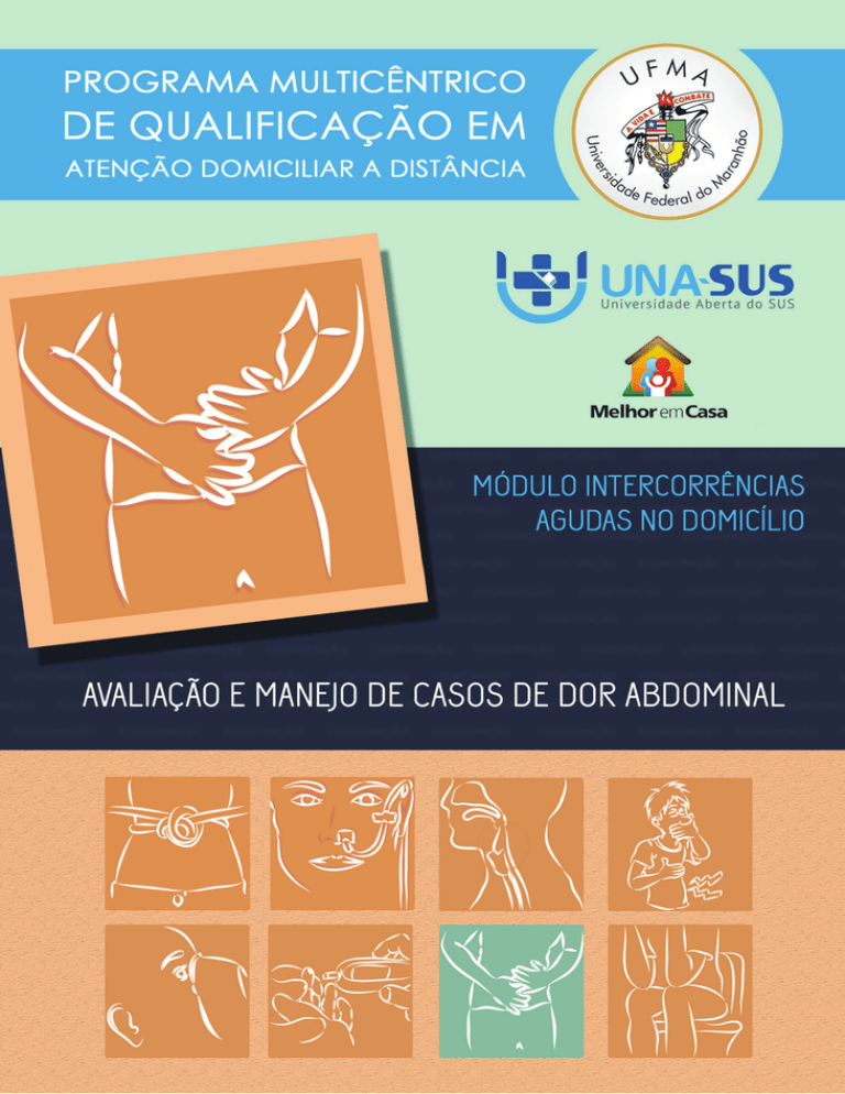 1 Programa Multicêntrico de qualificação em Atenção Domiciliar a Distância 2 GUILHERME EMANUEL BRUNING MAURO BINZ KALIL SATI JABER MAHMUD UNIDADE 8 AVALIAÇÃO E MANEJO DOMICILIAR DA DOR ABDOMINAL São Luís 2013 3 Programa Multicêntrico de qualificação em Atenção Domiciliar a Distância 4 UNIVERSIDADE FEDERAL DO MARANHÃO Reitor – Natalino Salgado Filho Vice-reitor – Antonio José Silva Oliveira Pró-Reitoria de Pesquisa e Pós-Graduação – Fernando de Carvalho Silva CENTRO DE CIÊNCIAS BIOLÓGICAS E DA SAÚDE - UFMA Diretora – Nair Portela Silva Coutinho 5 Programa Multicêntrico de qualificação em Atenção Domiciliar a Distância Copyright @ UFMA/UNASUS, 2011. Todos os direitos reservados à Universidade Federal do Maranhão. Créditos: Universidade Federal do Maranhão - UFMA Universidade Aberta do SUS - UNASUS Praça Gonçalves Dias, Nº 21, 1º andar, Prédio de Medicina (ILA) da Universidade Federal do Maranhão - UFMA Designer instrucional: Cácia Samira de Sousa Campos. Normalização: Bibliotecária Eudes Garcez de Souza Silva. CRB 13a Região, Nº de Registro – 453. Revisão de conteúdo: Leonardo Cançado Monteiro Savassi, Mariana Borges Dias. Revisão ortográfica: João Carlos Raposo Moreira. Revisão técnica: Ana Emília Figueiredo de Oliveira, Edinalva Neves Nascimento, Eurides Florindo de Castro Júnior, Renata Ribeiro Sousa. Universidade Federal do Maranhão. UNASUS/UFMA Intercorrências agudas no domicílio: dor abdominal/Guilherme Emanuel Bruning; Mauro Binz Kalil; Sati Jaber Mahmud (Org.). - São Luís, 2013. 17f. : il. 1. Atenção à saúde. 2. Atenção domiciliar. 3. Cuidados domiciliares. 4. Tratamento. 5. UNASUS/UFMA. I. Savassi, Leonardo Cançado Monteiro. II. Dias, Mariana Borges. III. Título. 616-08 6 SUMÁRIO 1 INTRODUÇÃO .......................................................................... 11 2 DOR ABDOMINAL: como pode ser classificada? ................. 11 2.1 Diagnóstico de dor abdominal ............................................ 12 2.2 O papel do profissional de saúde e do cuidador/família frente ao paciente com dor abdominal ............................... 14 2.3 Quando referenciar .............................................................. 15 REFERÊNCIAS ........................................................................... 17 7 Programa Multicêntrico de qualificação em Atenção Domiciliar a Distância 8 Avaliação e manejo domiciliar da dor abdominal APRESENTAÇÃO Caro (a) aluno (a), Nesta unidade, estudaremos o que é a dor abdominal, como classificá-la, como proceder com a anamnese, as formas de manejo e de referenciamento. A abordagem aqui disposta é fundamental para enriquecer sua prática de trabalho, pois em 80% das situações, com uma boa anamnese e exame físico, é possível o profissional diagnosticar os casos de dor abdominal. Portanto, o objetivo deste estudo é identificar sintomas, associados à dor, que necessitam de maior atenção e intervenção. Bons estudos! 9 Programa Multicêntrico de qualificação em Atenção Domiciliar a Distância 10 1 INTRODUÇÃO A dor abdominal é uma condição comum e desafiadora na atenção domiciliar. Cerca de 2,5% das pessoas necessitam de consultas anualmente devido à queixa de dor abdominal. Com uma boa anamnese e exame físico, aliados à habilidade de comunicação, o médico pode ser resolutivo em até 80% dos casos de dor abdominal. Os 20% restantes poderão permanecer sem um diagnóstico preciso (TRINDADE, 2012). 2 DOR ABDOMINAL: como pode ser classificada? A dor abdominal pode ser classificada em aguda e crônica. Existe um limite teórico para separar a dor aguda da crônica: duração maior ou igual a 12 semanas. Porém, utilizando-se de uma escuta qualificada, deve-se considerar o julgamento clínico em relação ao episódio apresentado para melhor classificação e abordagem. Do ponto de vista prático, podem-se utilizar as seguintes características: • Dor de alguns dias de duração, com piora progressiva até o dia da apresentação, atingindo dor aguda; • Dor que não altera suas características durante meses ou anos pode seguramente ser considerada crônica; • Uma dor que não se enquadra claramente em nenhum dos dois critérios mencionados pode ser chamada de subaguda e deve considerar o diagnóstico diferencial das duas condições (TRINDADE, 2012). 11 Programa Multicêntrico de qualificação em Atenção Domiciliar a Distância 2.1 Diagnóstico de dor abdominal A anamnese deve ser realizada com ênfase em classificar a dor em aguda ou crônica, além de pesquisar os sinais de alarme que podem ser indicativos de referenciamento (ver “Quando referenciar”). São características importantes a serem pesquisadas: • Identificação da pessoa, contexto familiar, ambiente familiar, hábitos alimentares; • Identificar o que se passou nas últimas 24 horas; • Caracterizar a dor: início, caráter (cólica, queimação, facada, pontada etc.), intensidade, frequência, localização, irradiação, fatores de piora e melhora; • Outros sintomas associados: febre, vômitos, hematêmese, hematoquezia, melena, icterícia, perda de peso, alterações de hábito intestinal, mudanças nas fezes e urina; • Sintomas extra-abdominais: pesquisa de problemas cardíacos e pulmonares (IAM e pneumonias – dor referida); • História pregressa: história cirúrgica e clínica, além de boa revisão quanto ao uso de medicamentos. O exame físico completo é fundamental para identificar com mais coerência e com mais probabilidades de acerto as causas da dor (GOROLL e MULLEY, 2006). Os quadros a seguir auxiliam a diferenciar a dor abdominal de acordo com o seu mecanismo causador e localização: 12 Quadro 1 - Dor abdominal de acordo com o mecanismo causador Fonte: GOROLL, A.H.; MULLEY, A.G. Primary care medicine: office evaluation and management of the adult patient. 5. ed. Philadelphia: Lippincott Williams and Wilkins, 2006. Q