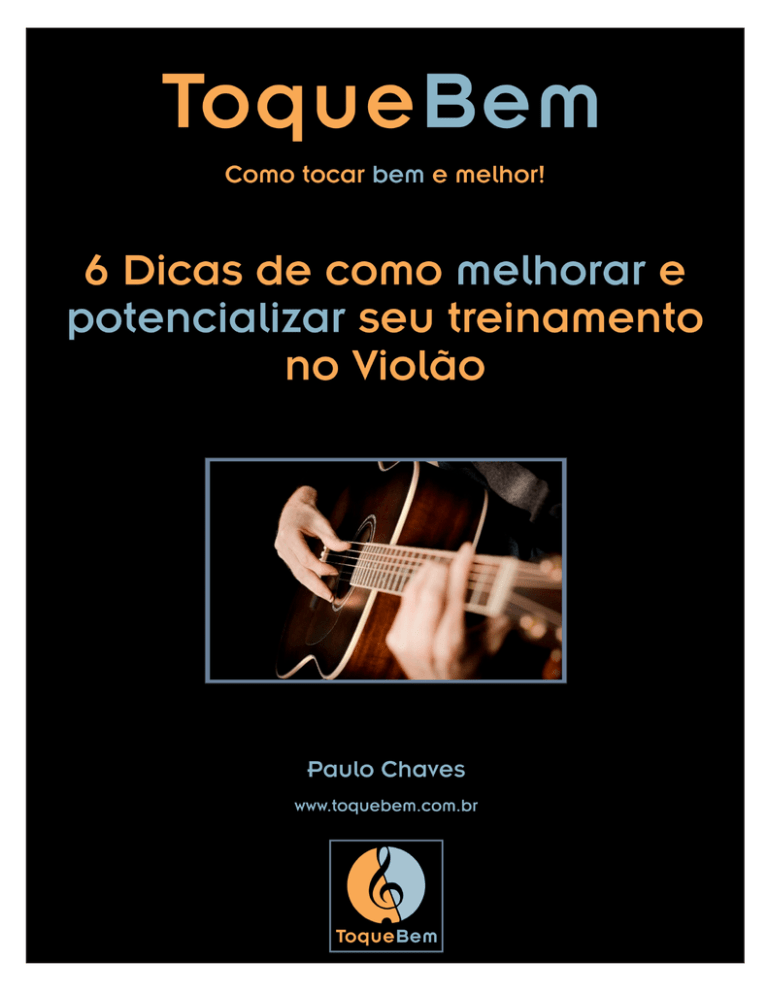 Toque Bem Paulo Chaves toquebem.com.br Toque Bem Toque Bem Olá. Obrigado por ter curtido a nossa página no Facebook! Existem dezenas de dicas excelentes. O motivo de eu ter escolhido essas 6 foi bem simples: as 5 primeiras sempre são as mais frequentes dúvidas e necessidades dos meus alunos iniciantes e de quem toca e quer tocar bem violão. A sexta dica eu resolvi colocar por, apesar de muito simples, ser importantíssima para quem quer mas ainda não começou a tocar. Nesse primeiro vídeo eu me concentrei em dicas mais frequentes entre os iniciantes. Nas próximas semanas eu postarei dicas mais sofisticadas. Mas, duas coisas: Primeira: independentemente do seu nível, meu conselho é: ouça todas com atenção porque é muito comum, mesmo quem já toca, às vezes não conhecer alguma delas e pode ser justamente uma dica como essa que vai melhorar e facilitar muito a sua vida na hora de tocar, OK? Segunda: Aproveite as dicas uma por uma! Quando eu falo aproveitar eu quero dizer - não assista simplesmente ao vídeo. Aprenda cada toque, vá para o violão, experimente, e sinta a diferença que elas fazem na hora de tocar. Uma última coisa: algumas dicas são aparentemente coisas simples, simples depois que alguém te fala. Algumas levariam meses e até anos para serem detectadas. Outras talvez nunca fossem nem percebidas. É muito comum também alguém já conhecer a dica e mesmo assim não usá-la. Então aproveite ao máximo porque isso é um presente valioso pra vc e o que eu desejo é tornar o seu caminho muito mais fácil do que se vc tivesse que descobrir tudo isso sozinho. Então, vamos lá. Um abraço. Paulo Chaves Paulo Chaves toquebem.com.br Paulo Chaves toquebem.com.br Toque Bem Toque Bem Dica 1 Ou seja, “treine devagar”! Ou, “não adianta treinar rápido”! Treine Devagar! Ou melhor ainda: “quando você treina rápido você está desperdiçando seu tempo”! Essa dica vai pros “azes do volante”! rsrsrs... Eu vou te explicar aqui como funciona o aprendizado cérebro-motor humano. O cérebro dá uma ordem de execução (no nosso caso aqui) para nossas mãos fazerem algo no violão. Nossas mãos executam essa ordem e obtemos assim um resultado (sonoro). Nosso cérebro então analisa esse resultado e envia nova ordem de execução. Mas essa nova ordem é um pouco diferente da anterior pois o nosso cérebro tenta aperfeiçoar o resultado. Nossas mãos executam essa nova ordem e obtém um novo resultado, levemente diferente do resultado anterior. Nosso cérebro analisa esse novo resultado e envia outra nova ordem de execução para as mão tentando melhorar ainda mais o resultado. E assim por diante, a cada resultado, nosso cérebro analisa e tenta aperfeiçoar a ordem de execução (o movimento das mãos). Quer aprender rápido? Então treine de vagar! A relação é mais ou menos essa: 5 ou 7 minutos de treino devagar, calmo, tranquilo, concentrado valem muito mais que, por exemplo, meia hora treinando como uma vaca louca desembestada, ok? Eu tenho histórias e mais histórias a esse respeito que outra hora eu te conto mas, por enquanto, grave isso: treine devagar. O que vc treinar assim nunca mais sai da sua mão (cérebro!). Mas então eu nunca vou tocar rápido? Lógico que sim! Mas primeiro treine bem devagar e depois, e somente depois que estiver conseguindo tocar tranquilo numa velocidade lenta é que você começa a aumentar a velocidade, bem aos poucos! Porque aí o nosso cérebro já aprendeu o movimento e vai apenas acrescentar velocidade. Ok? É isso aí. Observe que quem faz o trabalho de análise e aperfeiçoamento é o cérebro e não as mãos! E ele precisa de um tempo pra conseguir executar essa análiseaperfeiçoamento! E é exatamente isso que ele faz quando treinamos devagar! E além de aperfeiçoar os movimentos o nosso cérebro também memoriza o que estamos tocando. Mas quando nós treinamos rápido o nosso cérebro simplesmente não tem tempo para fazer esse processo. E nós (nosso cérebro) não conseguimos melhorar! Ficamos apenas “patinando” no mesmo lugar sem quase nenhum progresso ou melhora. Paulo Chaves toquebem.com.br Paulo Chaves toquebem.com.br Toque Bem Toque Bem Dica 2 Concentre-se! O que menos importa é o tamanho da sua mão! Essa é uma das encanações mais comuns entre os violonistas iniciantes e até entre os que já tocam a algum tempo. Muitos acham que tem um tamanho pequeno de mão e por isso pensam que estão impossibilitados de fazerem todos os movimentos, acordes e solos que gostariam. Então pra economizar seu tempo eu vou ser direto: Dica 3 Quando for treinar concentre-se. Essa é uma dica muito importante para nossa época tão moderna com computadores, internet e celular. E é muito comum os jovens fazerem várias atividades ao mesmo tempo. Mas para o instrumento não rende muito... Eu costumo dizer que 15 minutos concentrados valem muito mais que uma hora de treino disperso. O tamanho da sua mão é o que menos importa importa! No vídeo eu conto aquele capítulo da festa em que perguntei sobre o tamanho da minha mão. Eu também achava que minha mão era pequena pra tocar violão.E aquela resposta me ajudou muito. Nunca mais eu tive essa preocupação! Então: - procure um lugar sossegado; - leve um copo d’água para o local para o caso de sentir sede; Mas hoje, depois de tanto tempo tocando, convivendo e vendo outros violonistas tocarem eu posso dizer isso pra vc com toda tranquilidade: não sepreocupe com o tamanho da sua mão! - vá antes ao banheiro. Então não encane com o tamanho de suas mãos. Grandes, médias ou pequenas, com o tempo e prática elas vão fazer tudo que você precisar. - não fique na internet (Facebook, Twitter, Tumblr, Skype, e-mail, etc) É verdade que o tamanho do violão pode variar e que alguns violonistas encomendam seu violão com tamanho e larguras específicas. É também o caso das crianças e pré-adolescentes que utilizam instrumentos menores. Perfeito! Eu explico i